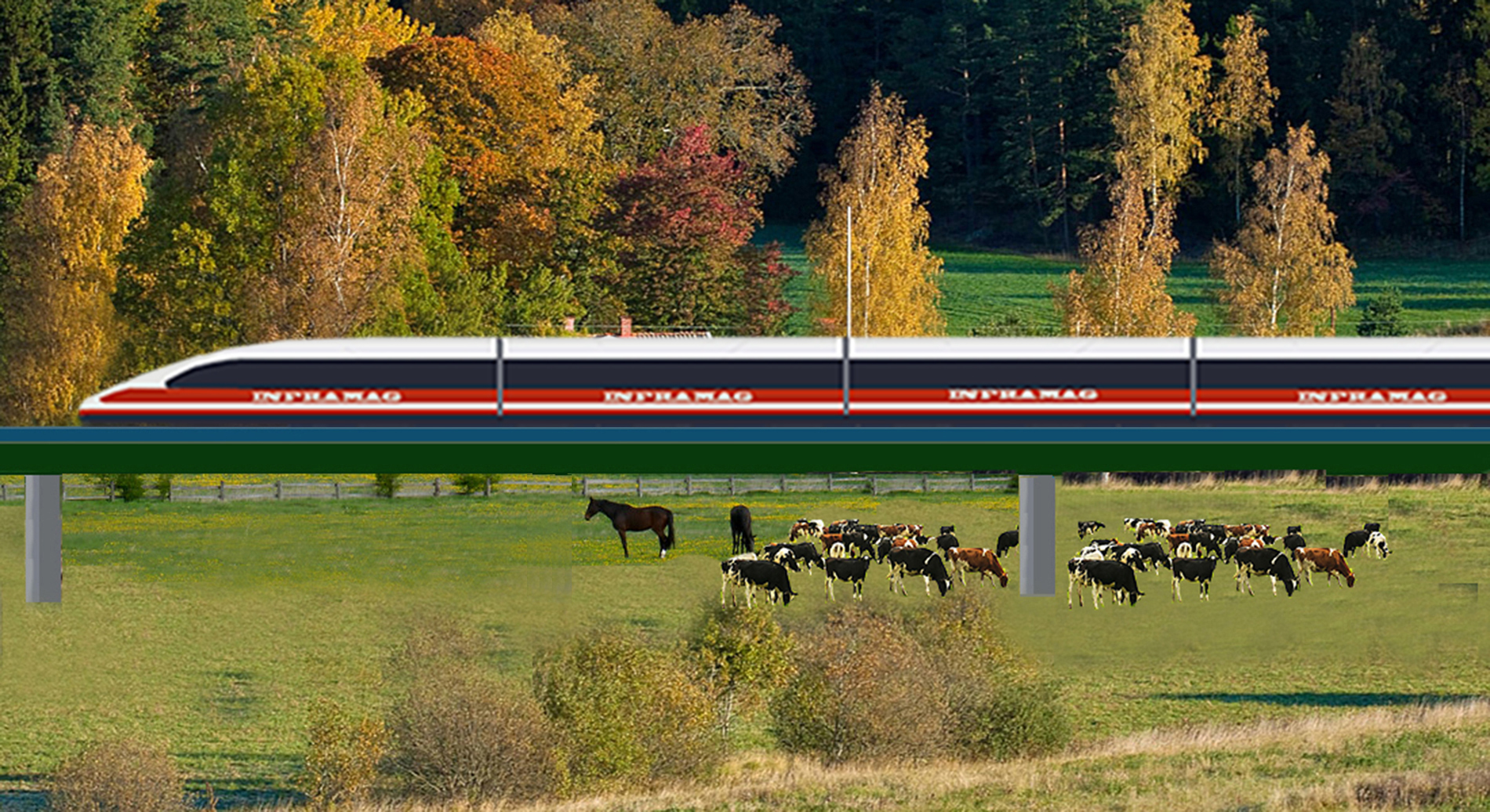 En tågbana på pelare ger stora fördelar. Risken för olyckor mellan tåg och djur, människor och andra fordon är minimal. Alla aktiviter kan fortgå under spåren (se bilder nedan) i samhällen såväl som på landsbygden och i skogen. Stationer i städernas centrum gör det enkelt för resenärer att stiga på eller av tåget.